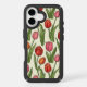 This charming case features a beautifully illustrated pattern of tulips in vibrant shades of red, romantic pink, and warm orange. The hand-drawn style, complete with delicate linework, gives it a classic, vintage botanical feel, all set against a soft, creamy off-white background.