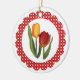This Tulips Ornament features my digital art watercolor painting of tulips with a red woven border.