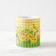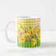 Add some springtime to your morning or anytime with this brightly colored mug featuring yellow and orange parrot tulips and pink tulips. In the similar vein of the Dorothy Draper line, this floral and plaid mix is sure to delight the recipient as a gift for Mother's Day or birthday. Wow your guests at your table with an entire set of mugs! Look for coordinating pieces for the ultimate in unique table settings!