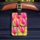 Lovely watercolor tulips drawing , yellow and orange stripes, personalized luggage tags.