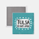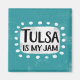 "Tulsa Is My Jam" is a fun text design with a white accent shape surrounded by white whimsical textured dots.