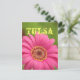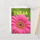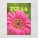 "Tulsa" postcard features a vibrant pink gerbera daisy.