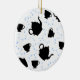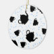Lightweight, smooth, pure white ornament with nice sheen. Perfect size to be seen from across the room ... and to attract closer inspection! Price was great for ordering enough for the whole family! Clear, bold black design just as requested. Matches the order exactly. Just so nice!