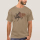 My 11 yo wore adult XL (5’7” 165#). The 8yo is small framed. She wore adult small and tied it in the back. Grandma wore adult large with long sleeve shirt underneath. Tall girl adult medium. Dark haired male adult large. Good quality dark Heather gray, Gildan brand shirt. -it was next up from basic choice and cost about $20 per shirt. Not too thick or thin. Washed and dried well, no major shrinkage. Not see-through. Can wear a bra under it fine. Screen print is just as shown and well done, front and back.
