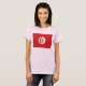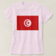 The front of this t-shirt boldly displays the Tunisian flag with its distinctive red crescent and star in a white circle centered on a red background. This is matched at the back by an attractive map of Tunisia.