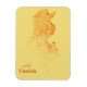 A poster showing a map of the streets of Tunisia, in the north of Africa, known for its golden beaches, sunny weather, and unique blend of Mediterranean cultures and influences.