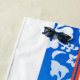 Royal blue and orange colorway. One of the most beautiful beaches in all of Hawaii, Tunnel Beach is located on the North Shore of Kauai. The surf culture and beautiful landscape inspired us to design this case in which we combined competition stripes and blended panels of hibiscus flowers.