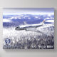 A digital painting of an Aeroflot Tupolev (Туполев) Tu-104 passenger jet in flight over a foggy, forested, winter landscape. Customize by adding your own text.