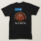Cartoon turkey after Thanksgiving, realizing what just happened! There is a "Pearly Gates" sign in the distance, a cartoon turkey looking surprised and saying "Say It Ain't So" in modern white lettering. (Doesn't work well on light colored shirts.)