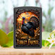 This dark, vibrant, and highly detailed design is a commanding tribute to the Turkey Farmer, set against a beautiful autumn sunset. The centerpiece features a massive, dominant turkey with impressive black, bronze, and brown plumage fully fanned out, standing proudly in a foreground field. The field is lush with white and yellow daisy-like flowers and tall grass, emphasizing a feeling of bounty and peace. In the background, a rustic wooden fence and barn are visible under a striking orange and gold sunset sky, creating a warm, inviting glow over the scene. The entire picture is framed by an ornate, dark bronze gothic arch and scrollwork that crowns the top of the design, lending a sense of veteran prestige and elegance. The title "TURKEY FARMER" is prominently displayed on a solid banner below the scene, celebrating the agricultural professional's dedication and command over the autumn harvest. This custom piece is an ideal display accessory for anyone who celebrates the farmer's hard work and the enduring beauty of the farm.