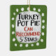 A funny typographic design that says "Turkey Pot Pie: Can Recommend, 5 Stars". It's black and red text on a white rectangle with funky, playful white dots surrounding it, all on a green background.