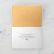 This contemporary card is a fresh take on Thanksgiving, and features a simplistic paper art and foil illustration of a plump turkey and pumpkin, and says, "That’s it, Tom. Hide behind the pumpkin. (wink, wink.)" Inside, "Wishing you a Thanksgiving with all the trimmings. (Of course, Tom’s praying for a pardon, and for you going vegetarian...) Part of a series.