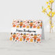 Thanksgiving card with a seasonal fall pattern, Corn, mushrooms and flora. Along with turkeys and scarecrows to honor the Thanksgiving tradition.
