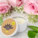 This awesome set of Thanksgiving party favor candles features a funny cartoon of a turkey with big black eyes, a small yellow beak and tail feathers sticking up. The feet are facing in opposite directions making the turkey look clumsy. The turkey is holding a yellow balloon with a message inside that says “it’s turkey time”. This is a fun thanksgiving party design.