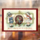 Vintage picture of two pilgrim children making a wish with a wishbone over a turkey, is featured on this Thanksgiving window cling. With message, "Appoint a Meeting with this old Fat Fellow", this will enhance your windows for the Thanksgiving holiday! Sticks to glass surfaces electro-statically so it can be removed and used over again. A great and easy way to decorate your home for Thanksgiving!