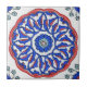 Turkish Mandala Pattern Tile Based on Tiles in the Rustem Pasha Mosque from the Ottoman Period. A circular mandala-like pattern fills the interior. Small ornaments in each corner. Lovely tile to fill a backsplash of a kitchen or remodeling for a bathroom in Mediterranean Style. Dark Blue, Coral, Turquoise, White. Iznik. From an antique slightly offset print, which adds it's own character to this tile derived from an Ottoman design.