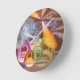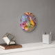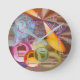 These dramatic clocks add a touch of flair to your decor. This one is from an abstract in fun colors with multi-colored bubbles and shapes. Counter clockwise numbers for people who are always short on time - or just for people who like to be a bit different!