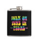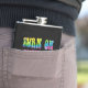 Well made flask, a little better than I had expected. Flask came in clear plastic box which gave it a nice presentation when I took it out of the zazzle packaging. Image is not printed on flask but on sticker. Don't know how this will hold up I haven't used it yet. This would make a Great gift! I plan to purchase more for friends! Cheers. I thought a little brighter than computer. Very crisp, writing wasn't