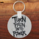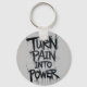 Turn pain into power. Transform your suffering into strength. Expressive human words in splash graphic frame.
