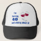 "I'm turning 40 and wining about it" is the verbage on this hat. The graphic is two glasses of red wine. This hat can be customized to have a person's name and the age can be changed to fit your need.