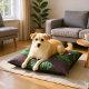 Vivid colors, and soft, plush fabric! I was extremely happy with this purchase. The print I chose worked on the large dog bed beautifully, and is a perfect match for our home tiki bar. Our dogs look so stylish lounging in here with us, and they love the soft fabric. My only minor critique would be that the stuffing inside is a little on the thin side, and becomes flat very easily. It's an extremely easy fix to add more stuffing, or do what we did and add a stuffed rectangle crate liner inside the cover underneath the existing stuffing - works perfectly! The printing turned out better than I could've imagined. I was extremely impressed with how well the colors turned out and how the design looked.