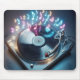 A vibrant display shows a turntable with glowing, colorful musical notes emanating from the spinning record