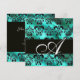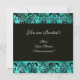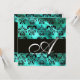 TURQUASE GREEN SILK DAMASK CLOTH MONOGRAM , white Invitation
