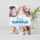 Turquoise 3 Photo Happy Hanukkah Modern Typography Holiday Card