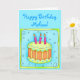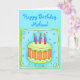 Happy Birthday card features an orange and green birthday cake with pink candles on a turquoise background with a whimsy green border on a turquoise card. Great also for a 3rd (third) birthday. Fully customizable for personalization and message. Celebrate a birthday or other occasion with the whimsy cake and cupcake original art that is perfect for both boys and girls as well as adults. The colors are in both softer and more vibrant colors.