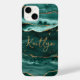 Personalized modern, elegant cell phone case with turquoise agate geode and faux gold glitter accents. The sample shows the name in an editable chic handwritten script. ASSISTANCE: For help with design modification or personalization, contact the designer BEFORE ORDERING via the Zazzle Chat MESSAGE tab below or email makeitaboutyoustore@gmail.com.
