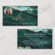 Turquoise Agate Gold Glitter Script Monogram Photo Business Card