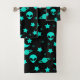Turquoise Alien Pattern with Stars and Moons Bath Towel Set