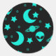 Turquoise Alien Pattern with Stars and Moons Classic Round Sticker