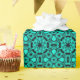 This striking wrapping paper features a bold turquoise and blue kaleidoscope fractal pattern arranged in a seamless geometric repeat. Intricate symmetrical shapes and layered textures create a dramatic design that blends abstract symmetry, psychedelic color, and modern digital art into a vibrant decorative pattern.