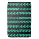 Turquoise and blue spirals pattern on black bath mat