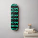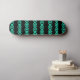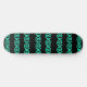 Turquoise and blue spirals pattern on black skateboard