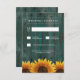 Turquoise and Brown Sunflower Wedding RSVP Cards - features a shabby turquoise and brown barn wood background with rustic sunflowers at the bottom.