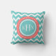 Turquoise and Coral Chevron Monogram Throw Pillow