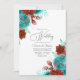 Turquoise and Coral Rustic Floral Wedding Invitation