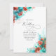 Turquoise and Coral Rustic Floral Wedding Invitation