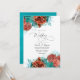 Turquoise and Coral Rustic Floral Wedding Invitation
