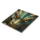 Turquoise and Gold Dragon Face Ceramic Tile