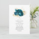 Turquoise - teal shabby-chic watercolor roses with faux gold foil foliage Celebration of Life invitation with a whimsical dragonfly pattern reverse customizable to your event specifics.
