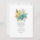 Plain white envelopes are included with paper invitations and will come to fit the invitation size you select. If you don’t need the envelopes, you may choose to not receive them by selecting the dropdown below "Envelopes" and choosing "None." If you’d like to have a design on your envelopes, you can browse all of these available envelopes to find the design that complements your Turquoise And Gold Floral Wedding Invitation.