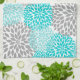 Turquoise and Gray Floral Kitchen Tea Towel