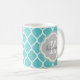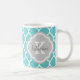 Turquoise and Gray Moroccan Quatrefoil Monogram Coffee Mug