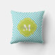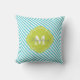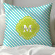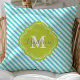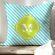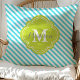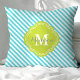 Turquoise and Green Striped Monogram Throw Pillow