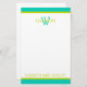 Turquoise and Lime Green Monogram Stationery