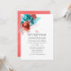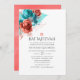 Turquoise and Living Coral Floral Bat Mitzvah Invitation
