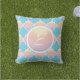 Turquoise And Pastel Quatrefoil Monogram Outdoor Pillow